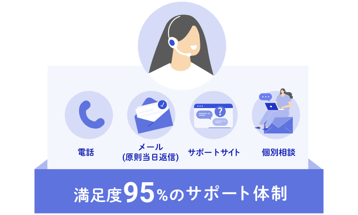 また、配信の相談やメール文面の添削にも対応する専任サポートチームが導入から運用までしっかり支援するため、初めての方でもスムーズに活用を始められます。 -