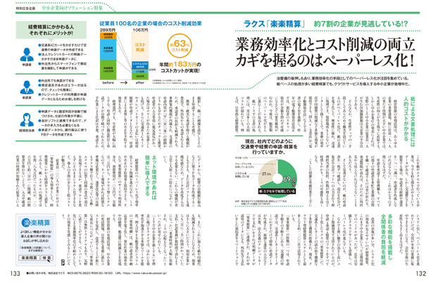 WEB請求書電子化ソフト「楽楽明細」の姉妹製品であるクラウド型経費精算システム「楽楽精算」がプレジデントにて紹介されました。「業務効率化とコスト削減の両立 カギを握るのはペーパーレス化」というタイトルで経費精算のシステム化による精算業務効率化のメリットをご紹介しています。