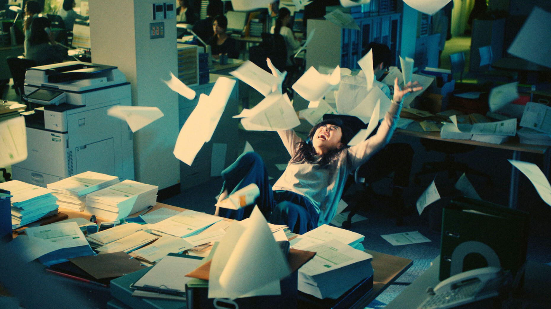 以前の彼女は、伸びた髪を振り乱し、青ざめた表情で請求書の封入作業をしていた。心配した上司の滝藤さんが心配して声をかけても、返事をする余裕もない・・。