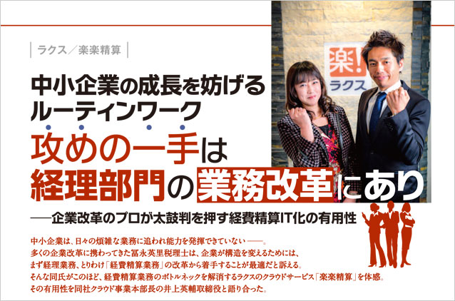 2014年3月17日号の雑誌『週刊ダイヤモンド』にて「中小企業の成長を妨げるルーティンワーク攻めの一手は経理部門の業務改善にあり」というタイトルで交通費・経費精算システム「楽楽精算」の取材記事が掲載されました。経費精算業務をIT化することの有用性について税理士冨永英里氏と弊社井上が対談をおこないました。旅費・経費精算システム「楽楽精算」の機能もご紹介しておりますので、是非ご覧ください。